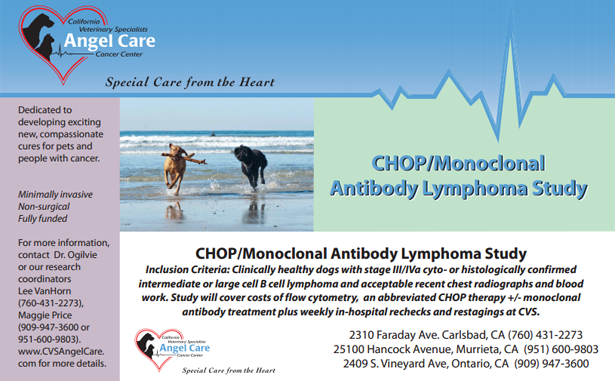 Inclusion Criteria: Clinically healthy dogs with stage III/IVa cyto- or histologically confirmed intermediate or large cell B cell lymphoma and acceptable recent chest radiographs and blood work. Study will cover costs of flow cytometry, an abbreviated CHOP therapy +/- monoclonal antibody treatment plus weekly in-hospital rechecks and restagings at CVS.